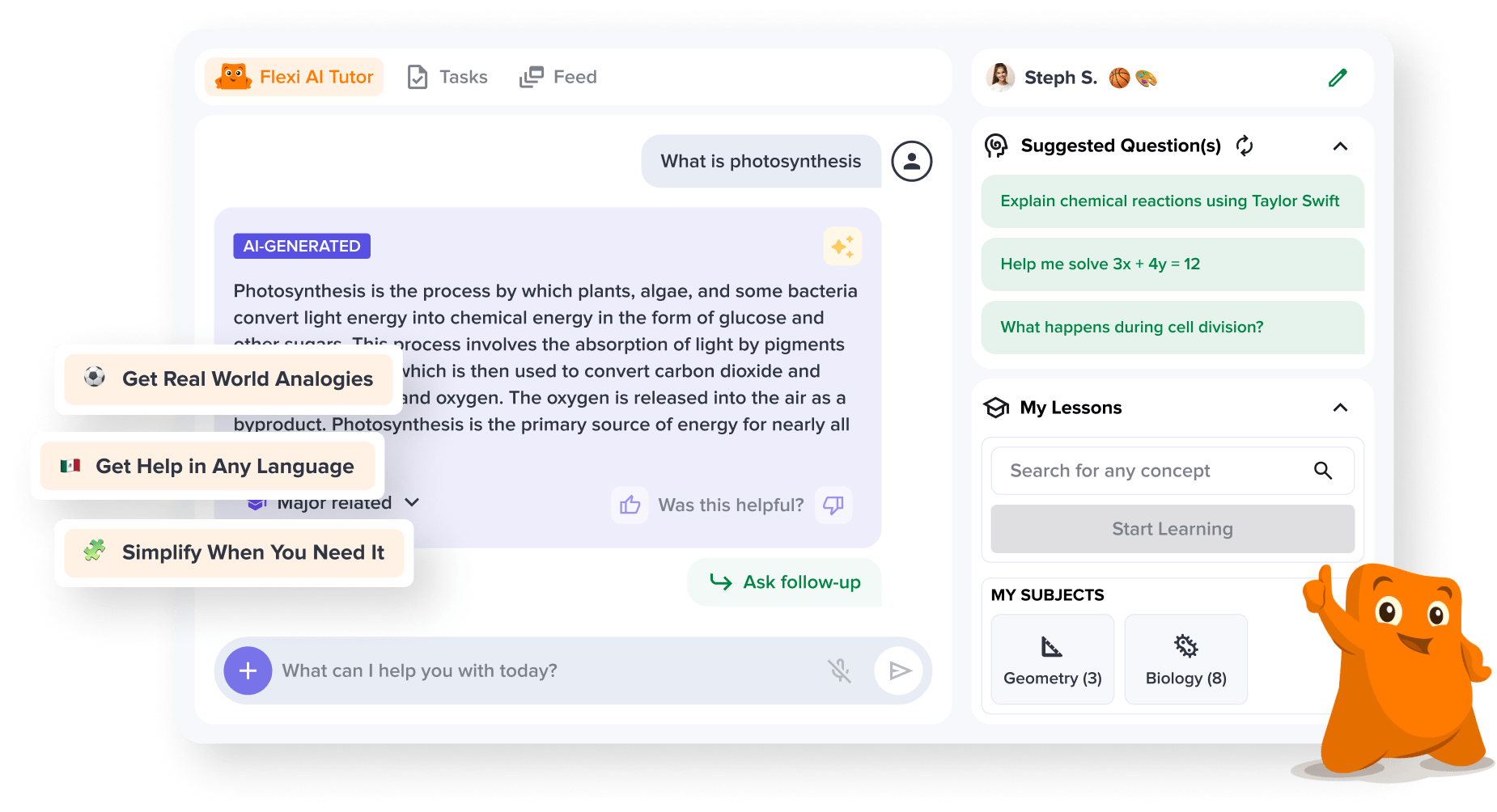 - Teacher Empowerment: Added teacher-controlled toggles (e.g., "Pause Flexi," "Rephrase Response"), reducing teacher workload and enhancing control.